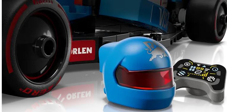 1 minifigure – The vehicle kit includes a driver minifigure wearing an RB outfit and a winged helmet for builders to place inside the F1 race car’s cockpit